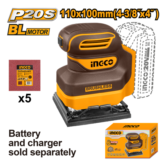 / LIXADEIRA ORBITAL 110X100MM À BATERIA ÍON-LÍTIO 20V CSHSLI2024 INGCO (NÃO ACOMPANHA BATERIA) CSHSLI2024