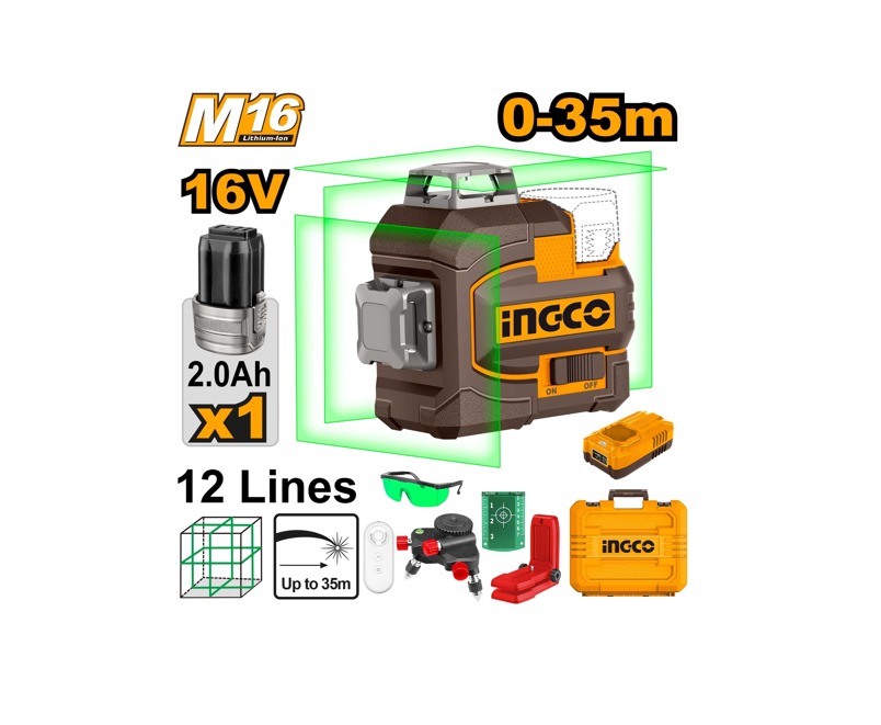 NIVEL A LASER 12 LINHAS VERDE 35M C/MALETA À BATERIA 16V UHLL301201-9